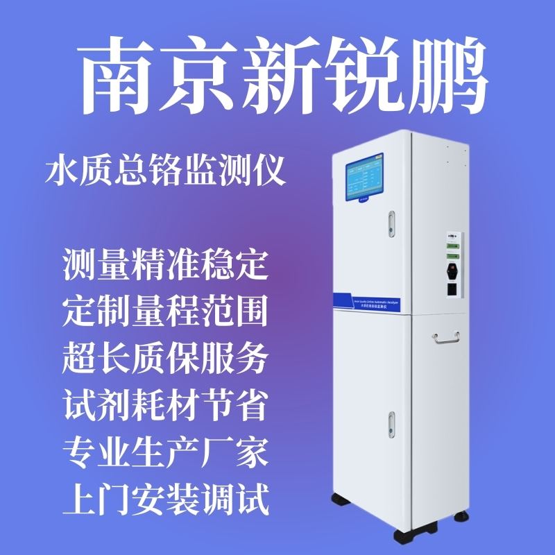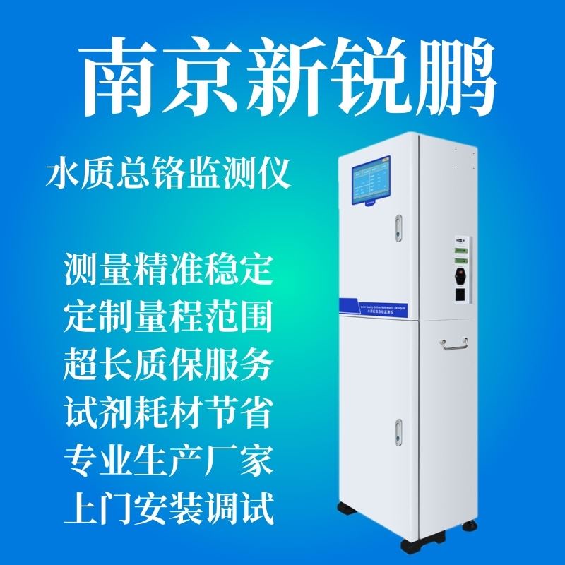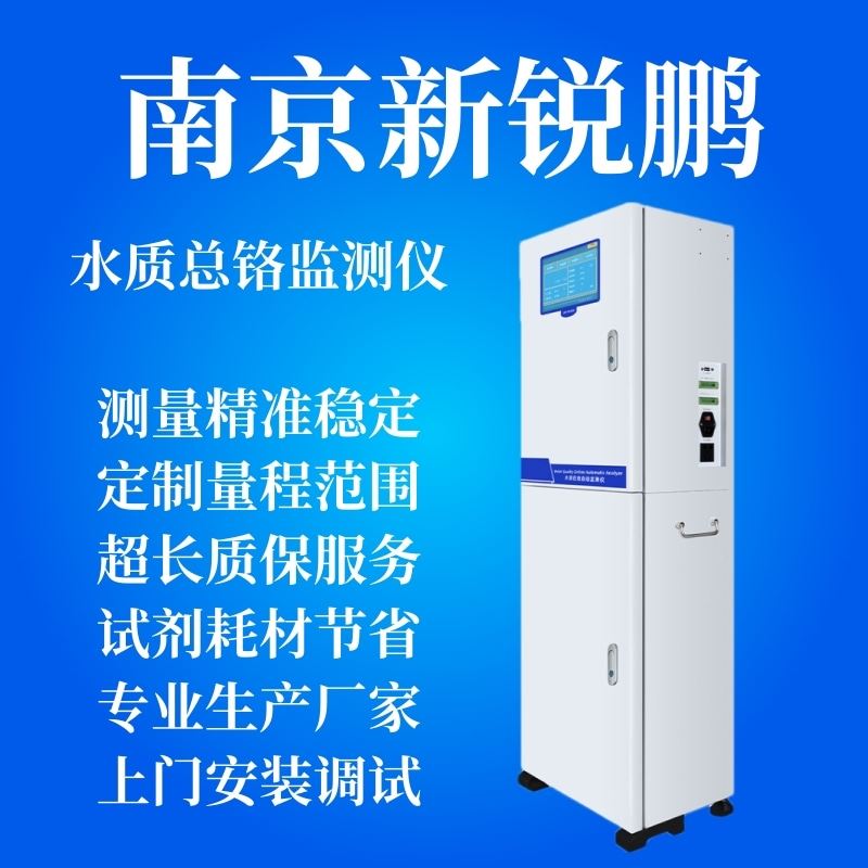 南京新锐鹏环保科技有限公司XRP TCr 2016型总铬在线自动监测仪,测量原理本产品采用二苯碳酰二肼分光比色法测定,水样和强氧 化剂混合后,把三价铬氧化成六价铬,六价铬在酸性环境和指示 剂存在情况下,与指示剂反应生成一种带色络合物,分析仪检测此颜色的 变化,并把这种变化换算成总铬值输出来。生成的带色络合物量相当于总铬量。